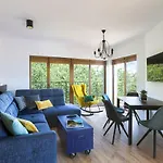 Das Apartment bietet seinen Gästen einen Wohnbereich, einen Balkon und eine Terrasse sowie moderne Annehmlichkeiten wie eine Waschmaschine. Genießen Sie den Komfort eines Badezimmers im Sloneczny Apartament Z Widokiem Na Gory, das mit einem Wäschetrockner ausgestattet ist.